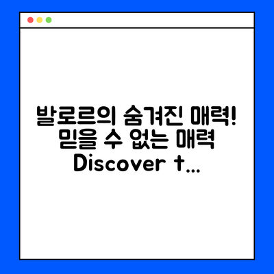혹시 여러분은 발로르에 숨겨진 매력을 발견해본 적이 있나요? 저도 처음 이곳을 방문했을 때는 유명한 관광지나 레스토랑만 생각했었어요. 하지만, 발로르의 숨겨진 명소들을 발견한 후로는 정말 다양한 매력을 느낄 수 있었답니다!